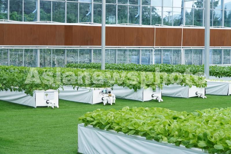 图片说明:2021年11月20日,在福建省平潭综合实验区君山镇芦北村的智能化温室玻璃大棚里,蔬菜通过温室大棚育苗技术和雾化栽培技术进行培育。