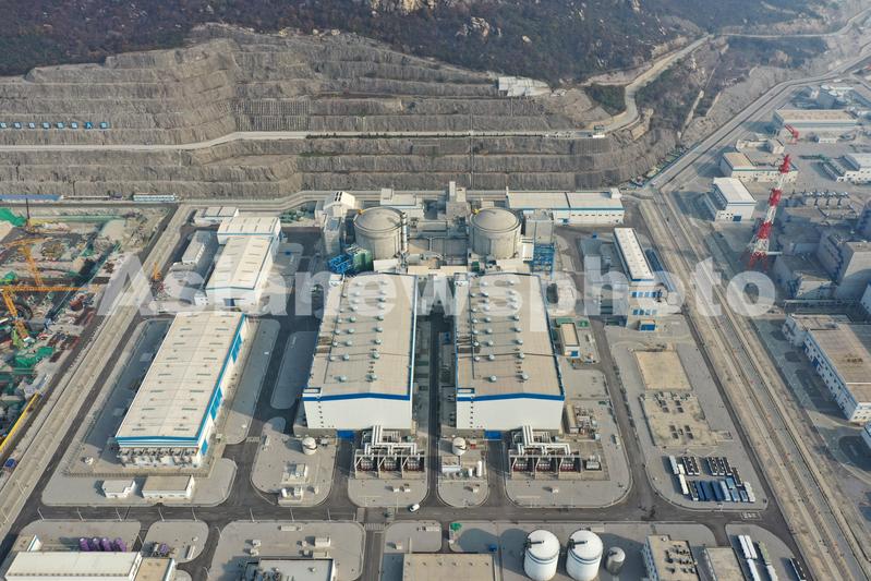 图片说明:2021年11月16日,在江苏省连云港市拍摄的中核集团田湾核电站5-6号机组全景(无人机照片)。