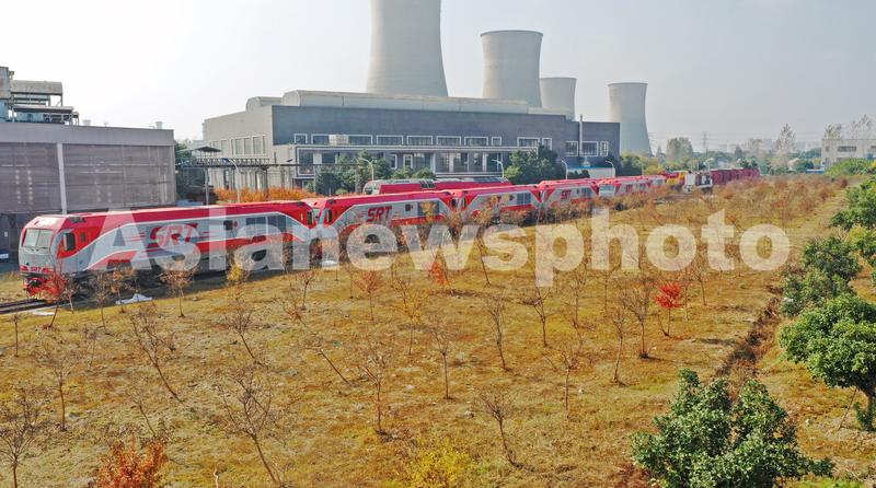 2021年11月18日,位于常州市经开区中车戚墅堰机车有限公司厂区内,工人们正在对出口泰国50台内燃机车进行最后的检查和调试工作。
