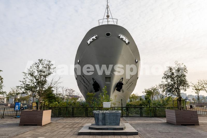 图片说明:2021年11月16日,上海,已经退役的远望1号停靠在黄浦滨江江南造船厂旧址。