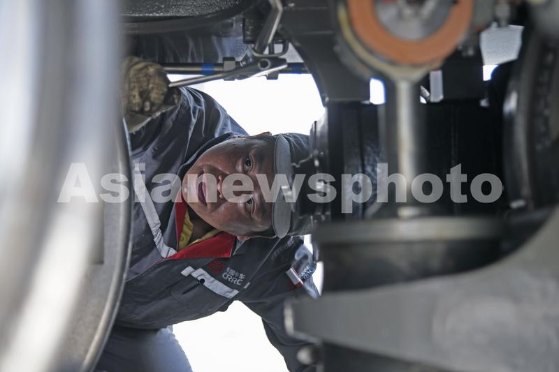 2021年11月18日,位于常州市经开区中车戚墅堰机车有限公司厂区内,工人们正在对出口泰国50台内燃机车进行最后的检查和调试工作。