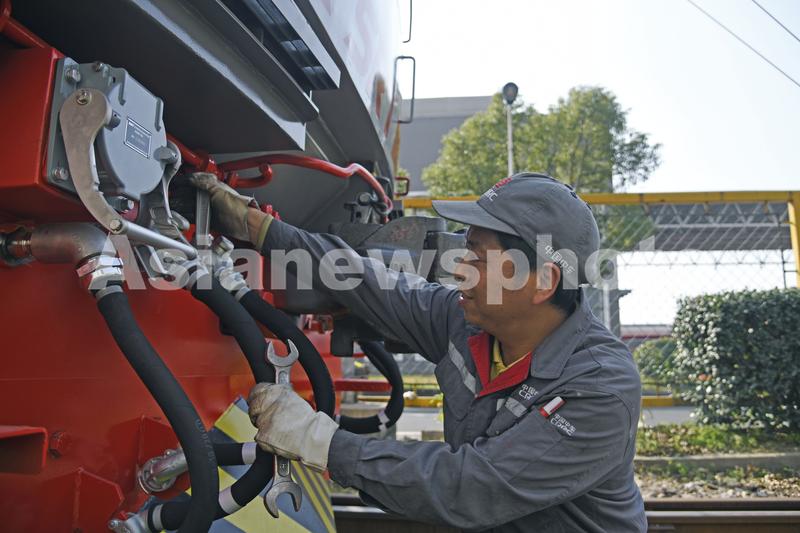 2021年11月18日,位于常州市经开区中车戚墅堰机车有限公司厂区内,工人们正在对出口泰国50台内燃机车进行最后的检查和调试工作,该批机车将于12月下旬陆续发运。