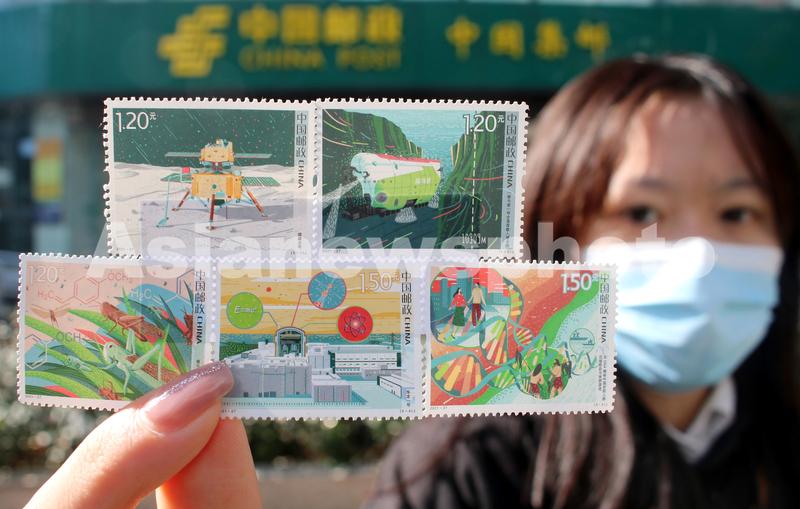 2021年11月24日,一名集邮爱好者在江苏苏州邮政局展示刚购买的《科技创新(三)》邮票。当日,中国邮政发行《科技创新(三)》邮票一套5枚,全套邮票面值6.60元。此套邮票展现了我国近两年取得的五项重要成果:嫦娥五号、“奋斗者”号全海深载人潜水器、揭示蝗虫聚群成灾的奥秘、华龙一号、古DNA揭秘中国史前人群迁徙动态与族群源流。