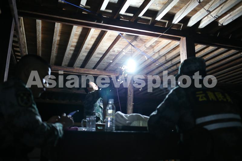 11月17日晚,瑞丽江边一处边境疫情防控值守点,执勤民兵休息间隙,飞蚂蚁聚集在灯光下。