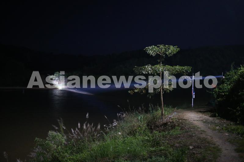 11月17日晚,瑞丽江边一处边境疫情防控值守点安装有探照灯。