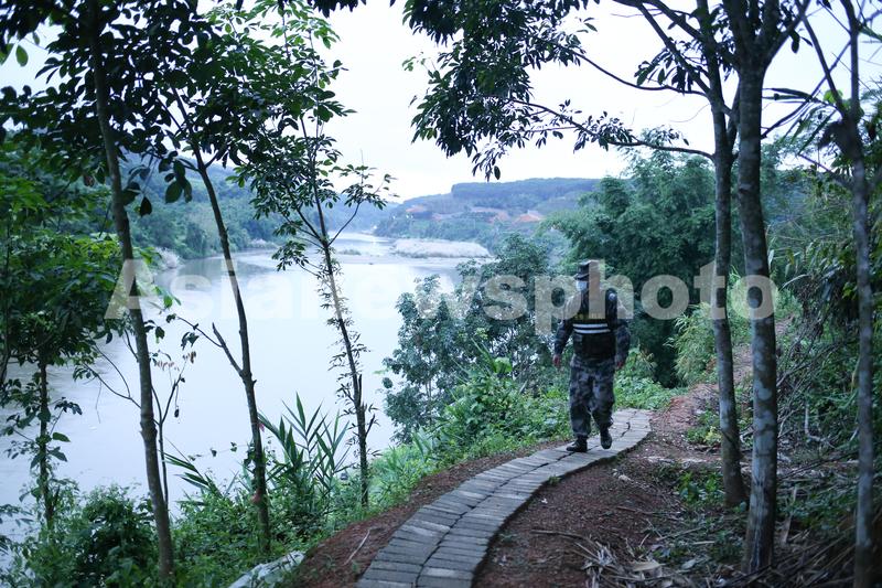11月18日清晨,执勤民兵在瑞丽江边的步道上巡逻。