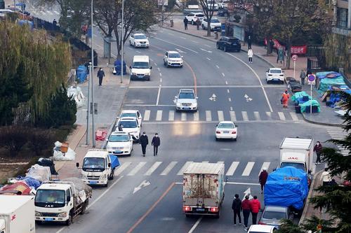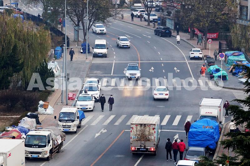 2021年11月29日早晨,解封后的大连市甘井子区泉水街道华泉街又再现人来车往的热闹景象。