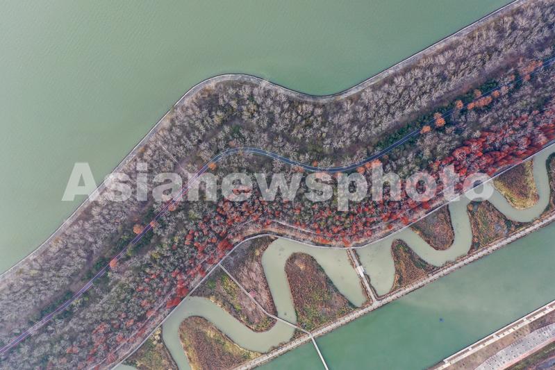 2021年11月29日,有着“水上长城”之称的江苏省淮安市洪泽湖大堤,迎来了一年最美的季节,五彩斑斓的植被绵延数里,犹如童话世界。