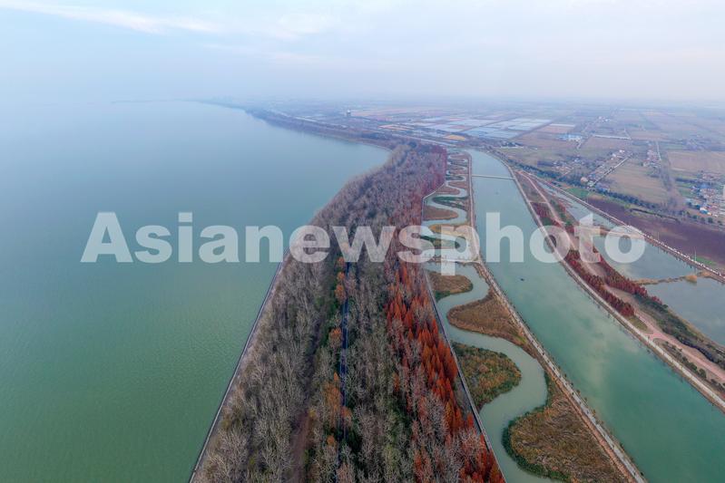 2021年11月29日,江苏省淮安市洪泽湖大堤。