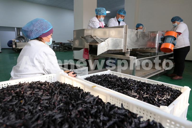 2021年12月6日,工人在新疆吐鲁番市高昌区新城片区新城西门村科技民生产业园葡萄干加工车间分拣葡萄干。