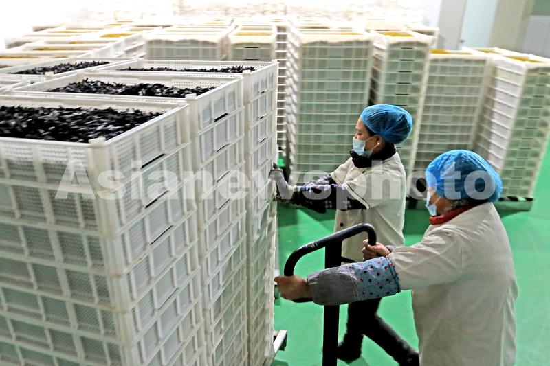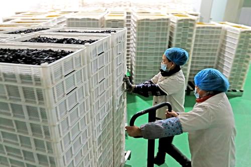 2021年12月6日,工人在新疆吐鲁番市高昌区新城片区新城西门村科技民生产业园葡萄干加工车间搬运刚下线的的葡萄干。眼下正是葡萄干销售旺季,新疆吐鲁番市高昌区新城片区新城西门村科技民生产业园葡萄干加工车间里机声隆隆,源源不断的各色葡萄干经过分拣、清洗、烘干等工序之后,保障市场供应。