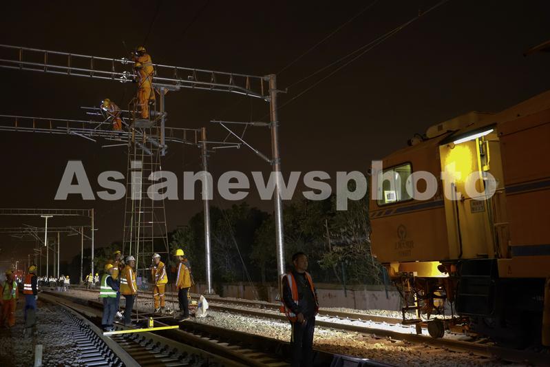 2021年12月9日凌晨,中铁电气化局技术人员正在进行接触网调整施工,同步进行大机捣固作业。