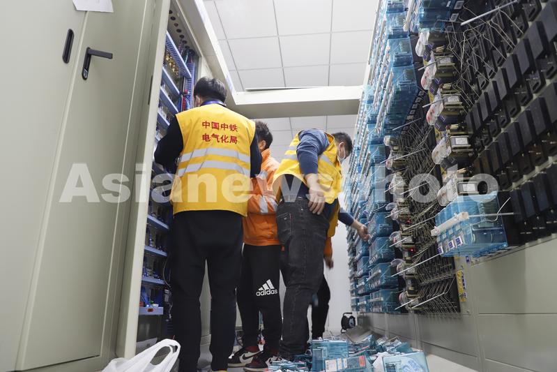 2021年12月9日,中铁电气化局技术人员正在拆除铁路信号设备。