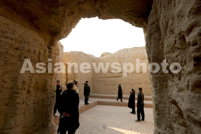 图片说明:2021年12月8日,游客在新疆吐鲁番市高昌区交河故城参观。