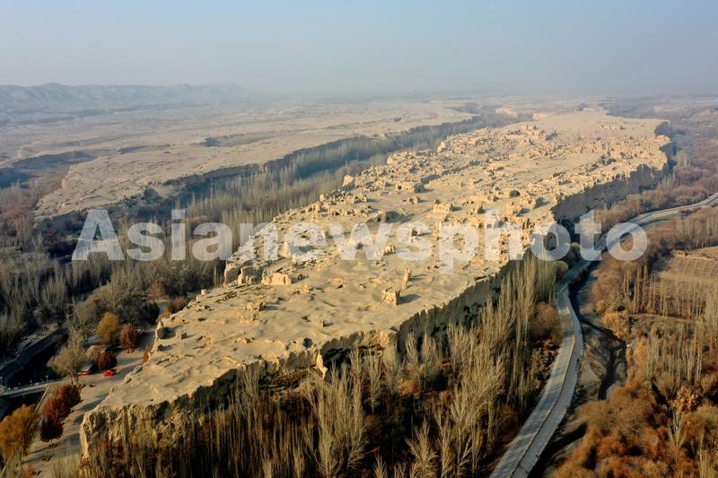 图片说明:2021年12月8日,在新疆吐鲁番市高昌区拍摄的交河故城景观。
