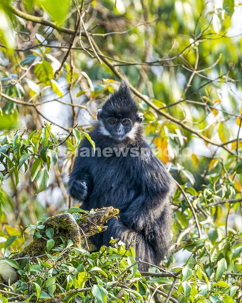 2021年12月9日,在重庆市南川区金佛山国家自然保护区拍摄的黑叶猴。