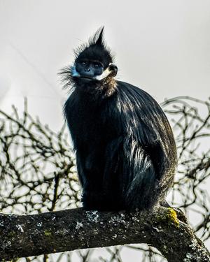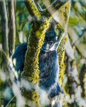 2021年12月9日,在重庆市南川区金佛山国家自然保护区拍摄的黑叶猴。