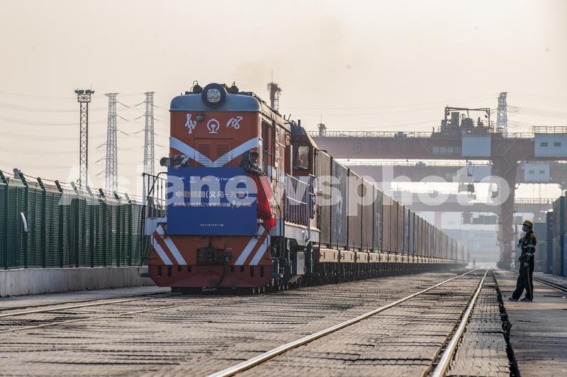 2021年12月13日下午,首趟满载70个标箱钾肥、小家电、机械配件和纺织用品等货物的中老铁路(义乌-万象)国际货运列车从浙江省金华市义乌西站启程。