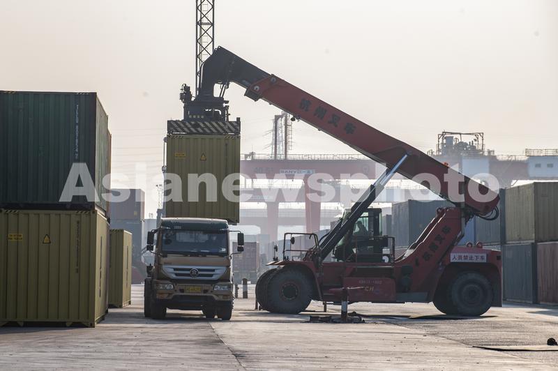 2021年12月13日下午,首趟中老铁路(义乌-万象)国际货运列车正在装箱,准备从浙江省金华市义乌西站启程。