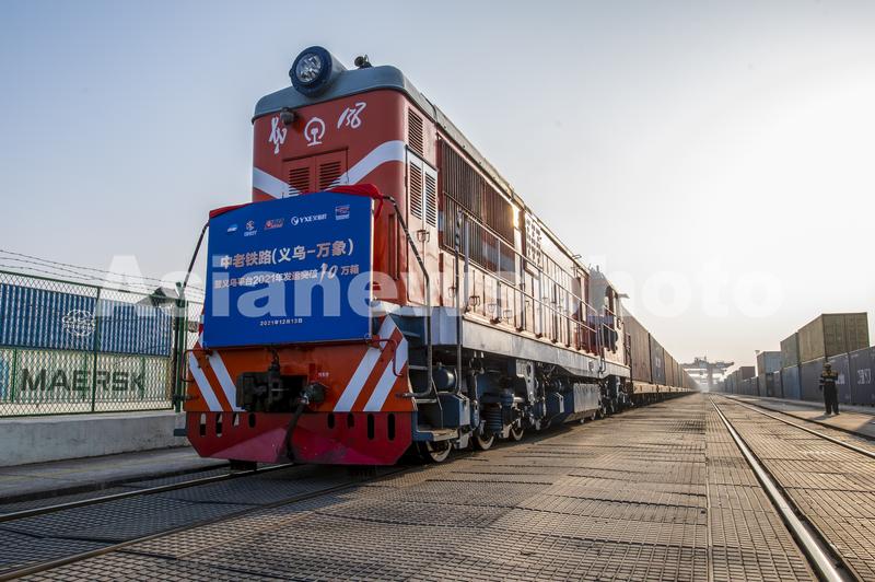 2021年12月13日下午,首趟满载70个标箱钾肥、小家电、机械配件和纺织用品等货物的中老铁路(义乌-万象)国际货运列车从浙江省金华市义乌西站启程,途经云南昆明市、玉溪市、普洱市、西双版纳傣族自治州,从磨憨口岸出境,最终抵达老挝首都万象,全程运行时间预计4天。