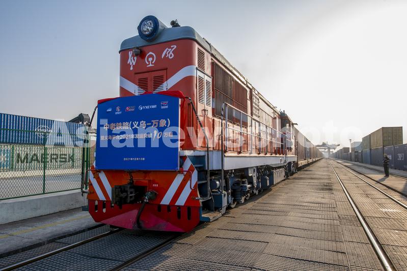 2021年12月13日下午,首趟满载70个标箱钾肥、小家电、机械配件和纺织用品等货物的中老铁路(义乌-万象)国际货运列车从浙江省金华市义乌西站启程,途经云南昆明市、玉溪市、普洱市、西双版纳傣族自治州,从磨憨口岸出境,最终抵达老挝首都万象,全程运行时间预计4天。