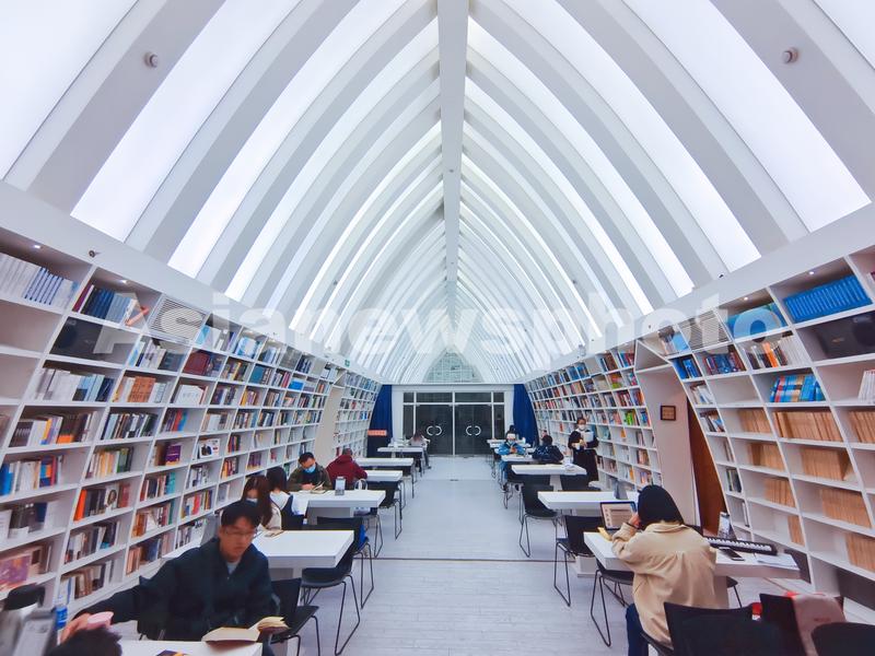 2021年11月28日,上海,位于松江泰晤士小镇的“钟书阁”书店内,读者在公共阅读区阅读。
