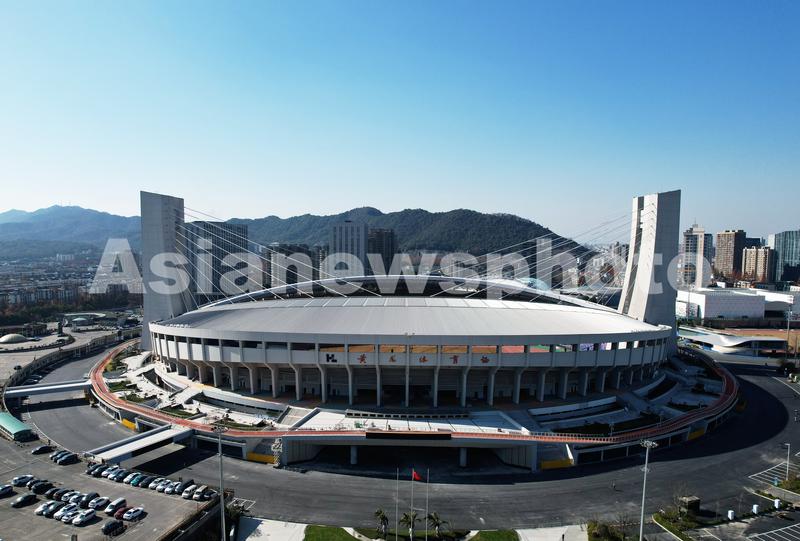 图片说明:2021年12月19日,从空中俯瞰位于杭州市西湖区的的浙江省黄龙体育中心。
