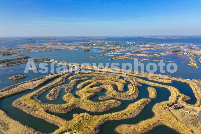 2021年12月18日拍摄的江苏省淮安市洪泽区境内的白马湖湿地。