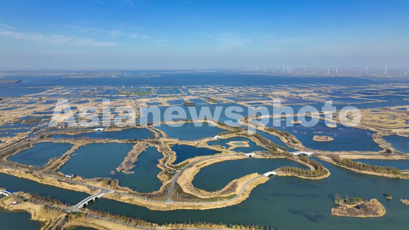 2021年12月18日拍摄的江苏省淮安市洪泽区境内的白马湖湿地。