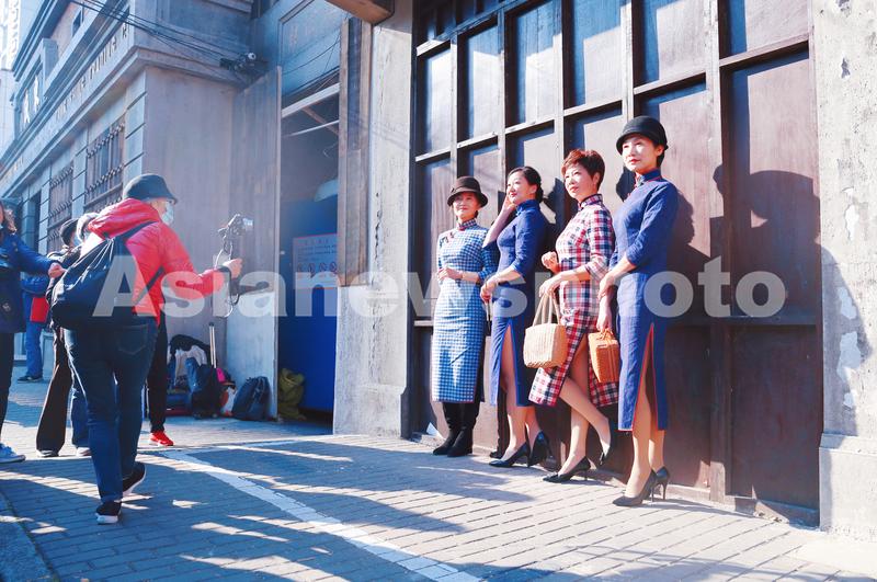 2021年12月19日,上海,因梁朝伟、王一博主演电影《无名》搭建的民国风街景而成为网红的黄浦区江阴街,因为人气持续火爆这些临时怀旧景观被暂缓拆除,尽管魔都近日迎来寒潮冷空气,还是有不少旗袍阿姨、老克勒爷叔赶到这里打卡街拍发朋友圈,不惧寒潮凹造型也吸引了众多围观群众。江阴街是魔都老城厢的百年老马路,沿街即将拆迁的老房子被剧组改头换面做了门面道具,年代感满满,让人仿佛穿越回民国时代的上海滩。