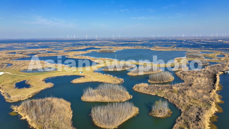 2021年12月18日拍摄的江苏省淮安市洪泽区境内的白马湖湿地。