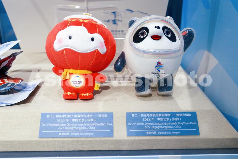 2021年12月19日,上海,2022北京冬奥主题展在体育博物馆迎来开展后的首个双休,图为冬奥会和冬残奥会的吉祥物冰墩墩、雪容融。