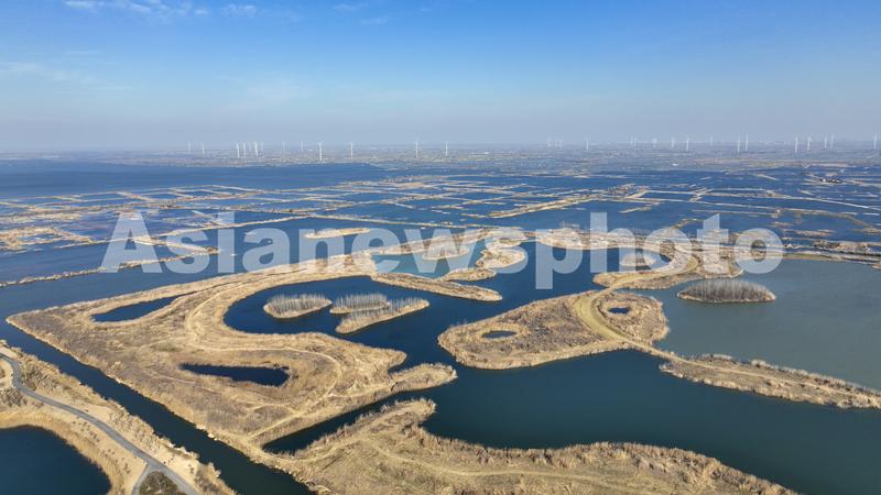 2021年12月18日拍摄的江苏省淮安市洪泽区境内的白马湖湿地。