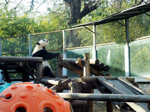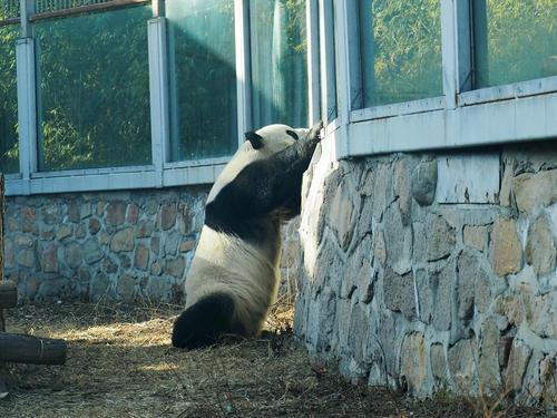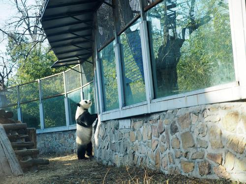 北京动物园“越狱”大熊猫围栏加装防护挡板 查看组图