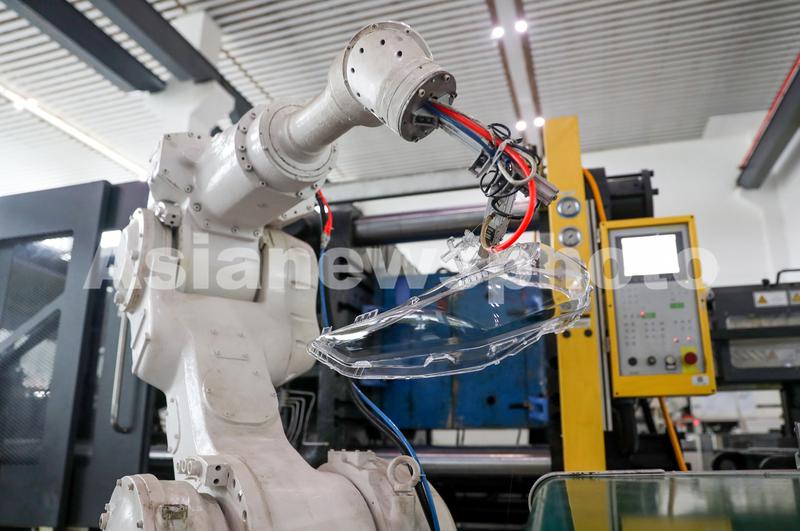 2021年12月22日,四川省华蓥市正大汽车配件厂在利用智能机器人赶制产品,保障春节市场“订单”需求。