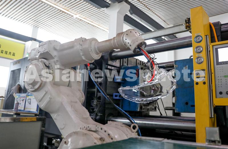 2021年12月22日,四川省华蓥市正大汽车配件厂在利用智能机器人赶制产品,保障春节市场“订单”需求。