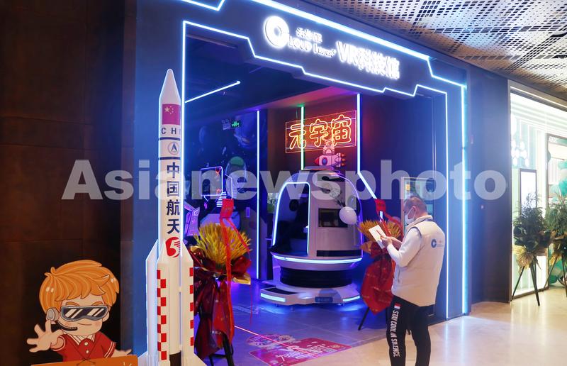 图片说明:2021年12月22日,上海,一家以虚拟现实动感电影和体感游戏为卖点的VR科技馆主推元宇宙概念,吸引不少玩家消费体验。