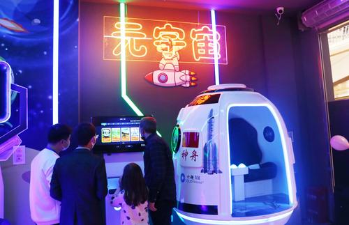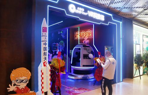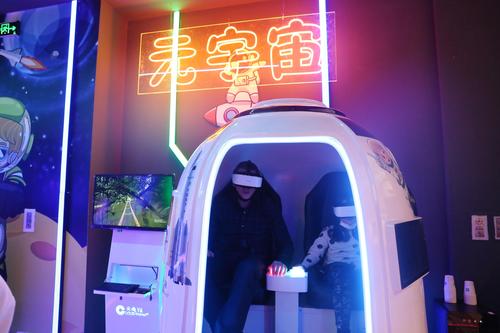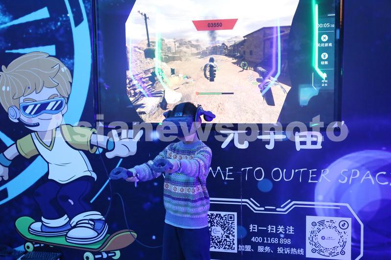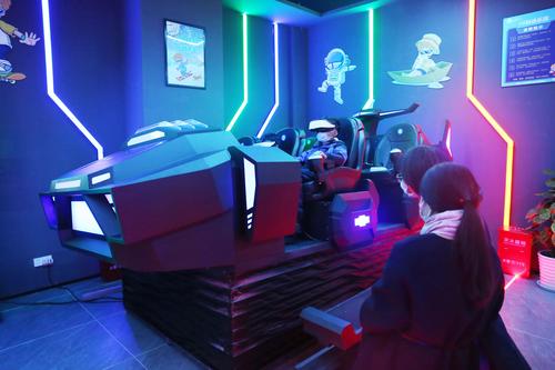 图片说明:2021年12月22日,上海,一家以虚拟现实动感电影和体感游戏为卖点的VR科技馆主推元宇宙概念,吸引不少玩家消费体验。