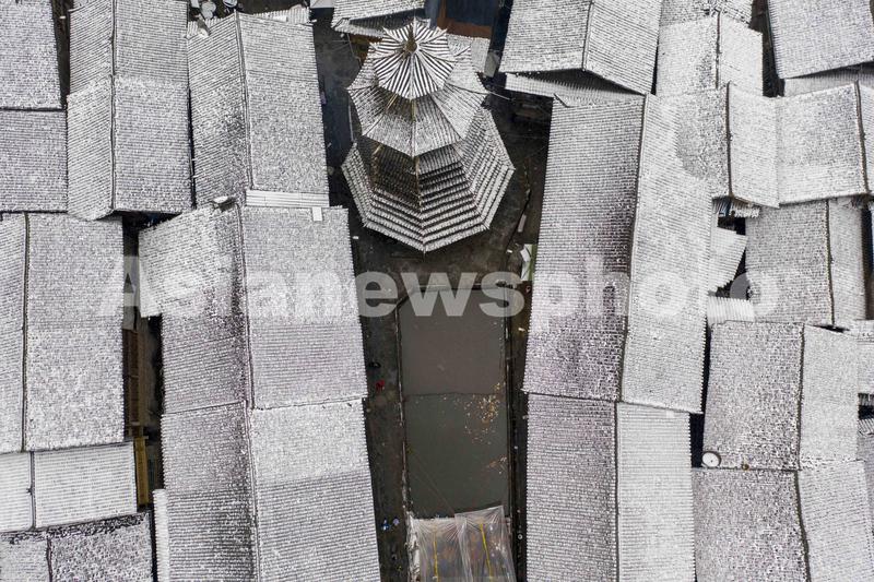 图片说明:2021年12月26日,在贵州省从江县往洞镇增冲村拍摄的雪景(无人机照片)。