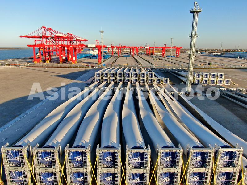 图片说明:2021年12月23日在江苏启东拍摄的刚刚启用的通州湾新出海口吕四起步港区10万吨级通用码头。