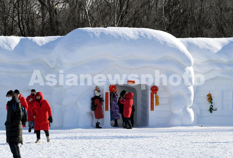 2021年12月24日,黑龙江省哈尔滨市,第34届太阳岛雪博会开园迎客。本届雪博会以“冬奥之光梦幻雪博”为主题,向游客呈现丰富多彩的冰雪艺术景观。
