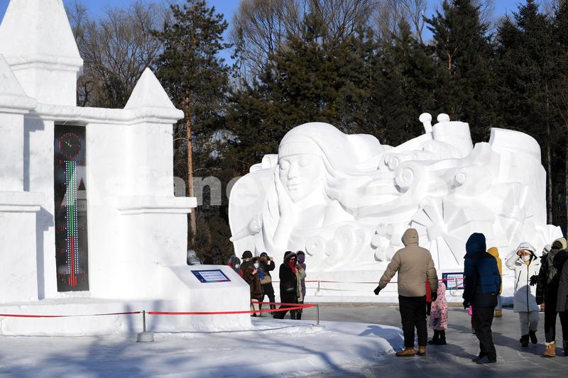 2021年12月24日,黑龙江省哈尔滨市,第34届太阳岛雪博会开园迎客。本届雪博会以“冬奥之光梦幻雪博”为主题,向游客呈现丰富多彩的冰雪艺术景观。