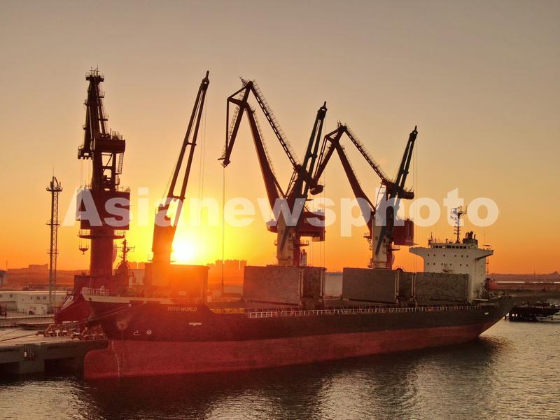 图片说明:2021年12月23日在江苏启东拍摄的刚刚启用的通州湾新出海口吕四起步港区10万吨级通用码头。