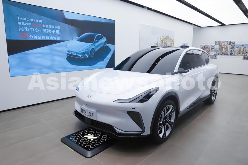 图片说明:2021年12月22日,在上海IM智己汽车新店内拍摄的新能源电动汽车ls7。