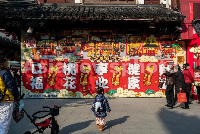 2021年12月29日,上海,豫园商场内一建筑外的“好运祈福墙”颇为引人注目,一旁还设置了“好运加油站”,吸引不少游客现场参与活动并拍照打卡。