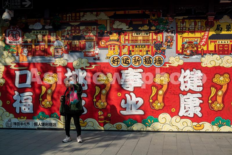 2021年12月29日,上海,豫园商场内一建筑外的“好运祈福墙”颇为引人注目,一旁还设置了“好运加油站”,吸引不少游客现场参与活动并拍照打卡。