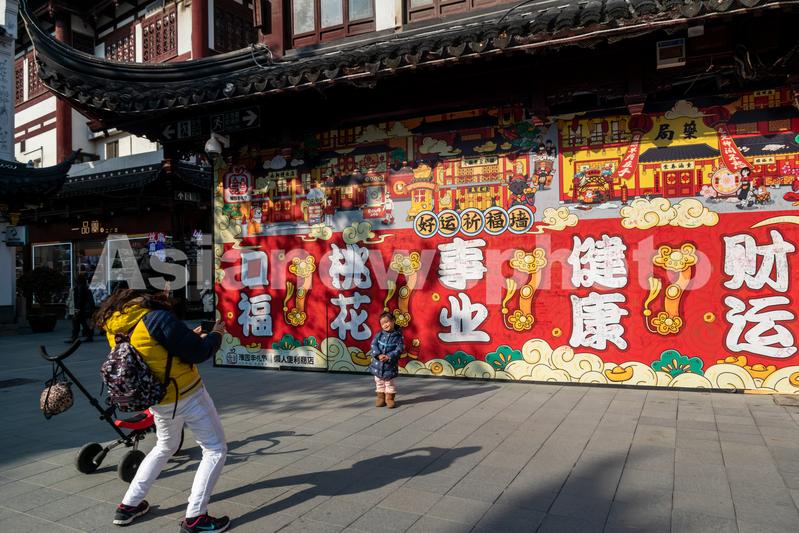 2021年12月29日,上海,豫园商场内一建筑外的“好运祈福墙”颇为引人注目,一旁还设置了“好运加油站”,吸引不少游客现场参与活动并拍照打卡。