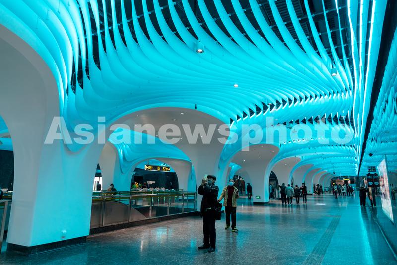 图片说明:2021年12月30日,上海,地铁14号线当天(12月30日)开通初期运营,其中豫园站室内设计相当亮眼,吸引众多市民前来打卡。
