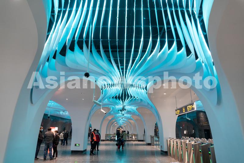 图片说明:2021年12月30日,上海,地铁14号线当天(12月30日)开通初期运营,其中豫园站室内设计相当亮眼,吸引众多市民前来打卡。