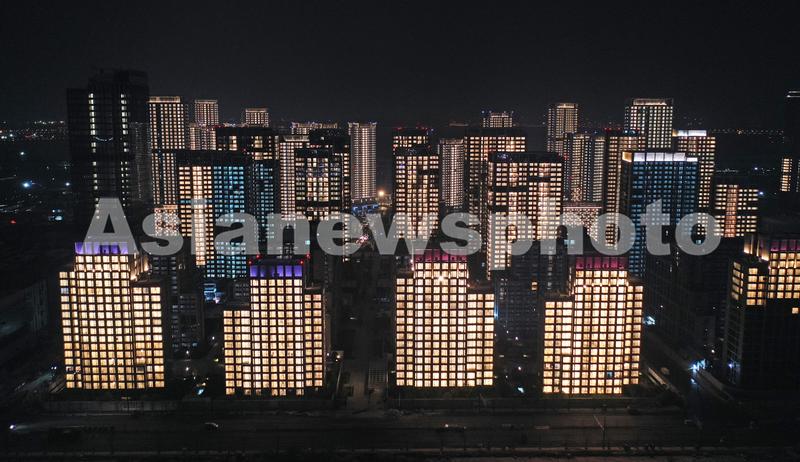 图片说明:12月24日,无人机拍摄的杭州亚运村试亮灯。